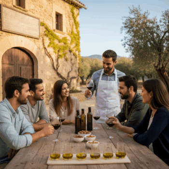 Degustación: Disfrutarás de una cata de Aceite de Oliva Virgen Extra (AOVE), maridado con su delicioso vino y nueces.