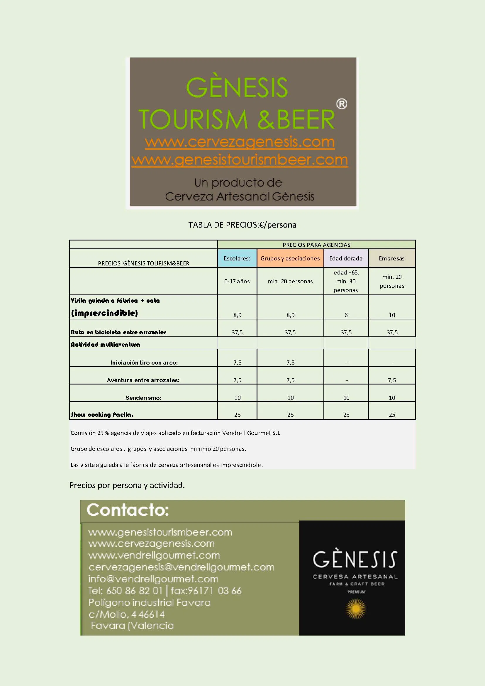 Precios especiales para empresas: 6 euros por persona. Para grupos a partir de 25 pax: 5,50 euros por persona. IVA incluido.