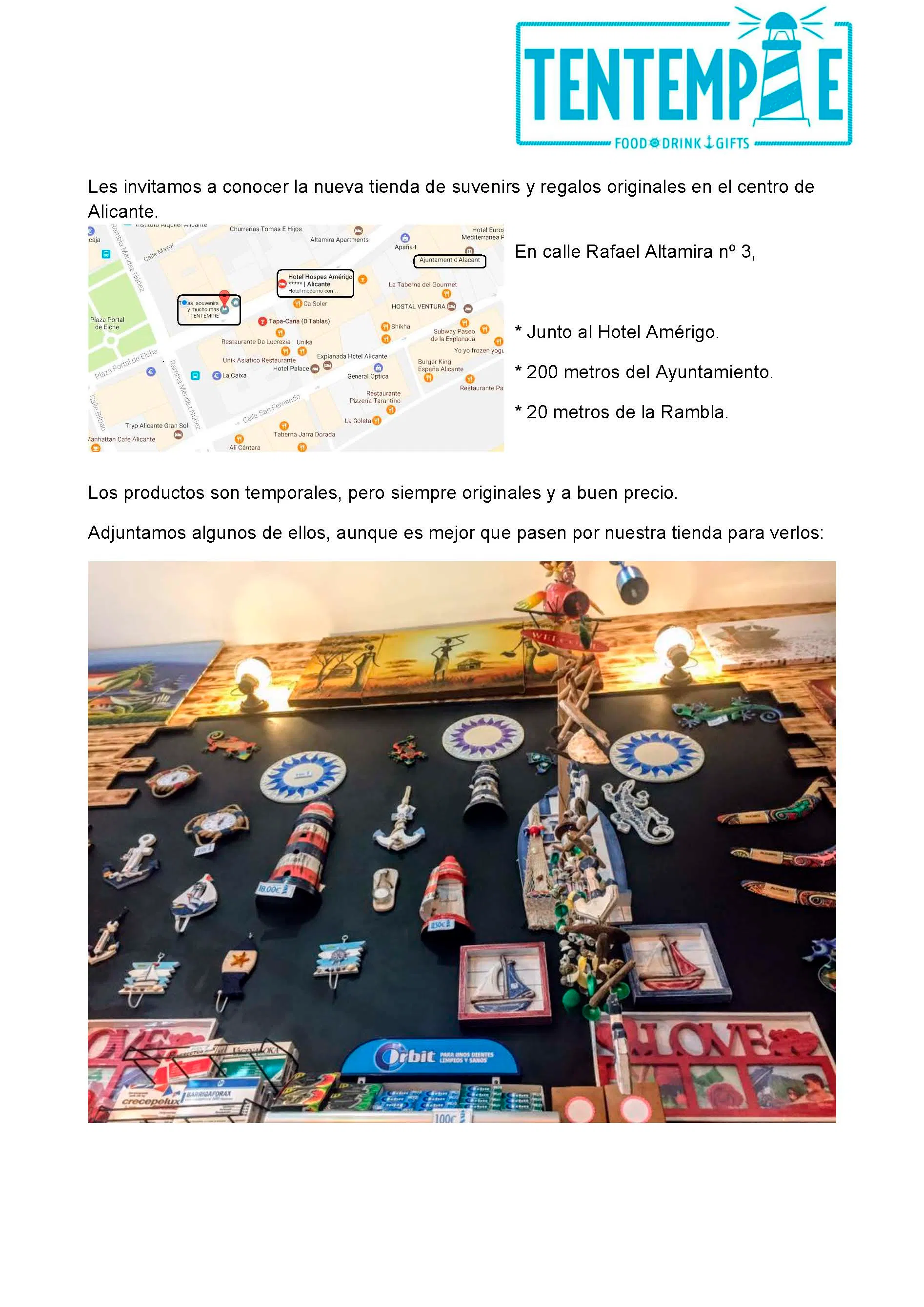 Adjuntamos una detallada presentación de lo que puede ofrecer nuestra tienda. Estaríamos encantados de poder colaborar con ustedes. Estaremos a la espera, de poder concertar una cita con ustedes, para poder detallar con más precisión lo que podemos ofrecerles.